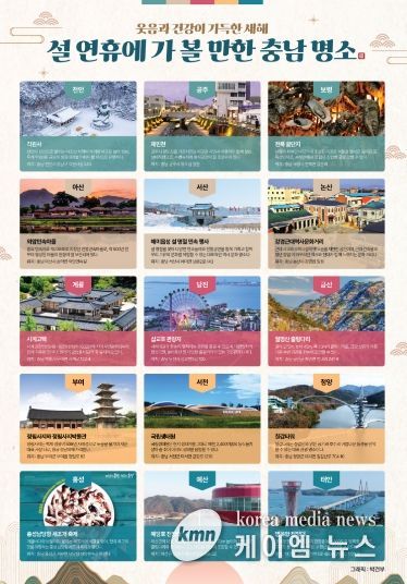 (케이엠뉴스) ‘2025∼2026 충남 방문의 해’를 추진 중인 충남도가 다가오는 설 연휴 기간 가족·연인·친구와 함께 갈만한 다양한 여행지를 소개한다.