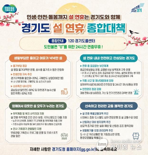 (케이엠뉴스) 경기도가 도민들이 따뜻하고 편안한 명절을 보낼 수 있도록 ‘설 연휴 종합대책’을 추진한다.