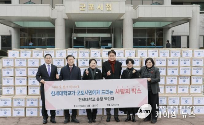 (케이엠뉴스) 유난히 추운 겨울이지만, 군포시에는 이웃을 향한 정성이 모여 훈훈한 설 명절 분위기가 피어나고 있다. 한세대학교는 10일, 지역 내 취약계층의 넉넉한 명절을 위해 ‘사랑의 희망박스’ 350세트를 군포시에 전달하며 상생의 가치를 실천했다.