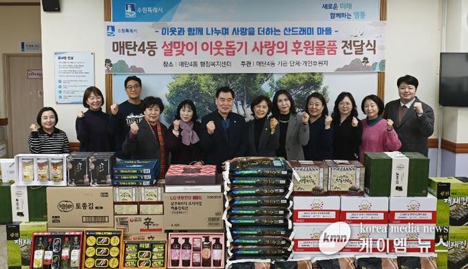 (케이엠뉴스) 영통구 매탄4동 행정복지센터는 지난 10일, 설 명절을 앞두고 지역 내 어려운 이웃들을 위한 ‘설맞이 사랑의 후원물품 전달식’을 개최하며 지역사회에 따뜻한 정을 나눴다.