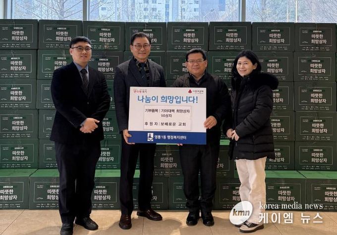 (케이엠뉴스) 수원특례시 영통구 영통1동은 지난 10일 보배로운 교회가 설 명절을 맞아 관내 어려운 이웃에게 전달해달라며 ‘기아대책 희망상자(생활필수품 키트)’ 50박스를 영통1동 행정복지센터에 기탁했다고 밝혔다.