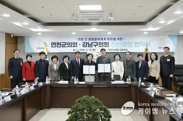(케이엠뉴스) 연천군의회와 서울시 강남구의회는 2026년 2월 10일 연천군의회 대회의실에서 친선결연식을 개최하고, 양 의회 간 우호 증진과 상호 협력을 위한 친선결연 협약식을 체결했다.