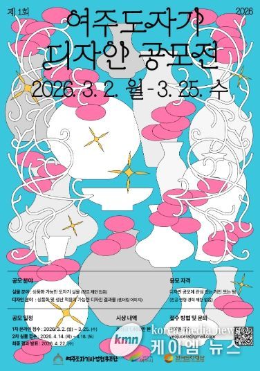 (케이엠뉴스) 대한민국 대표 도자 생산지 여주시가 도자산업 전반을 조망하고, 도자 디자인의 창의적 확장을 위해 ‘제1회 여주도자기 디자인 공모전’을 개최한다. 이번 공모전은 혁신적인 도자 디자인을 발굴해 문화관광 콘텐츠로 확장하는 데 의미가 있으며, 수상작은 오는 5월 1일부터 10일까지 열리는 제38회 여주도자기축제 기간에 전시할 예정이다.