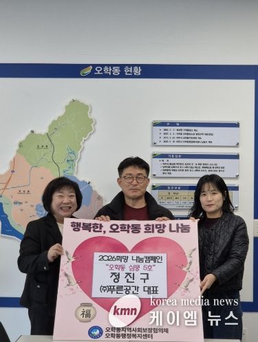 (케이엠뉴스) 여주시 오학동은 ㈜푸른공간 정진구 대표가 지난 10일 오학동 행정복지센터를 방문해 이웃돕기 성금 50만 원을 기탁했다고 밝혔다.