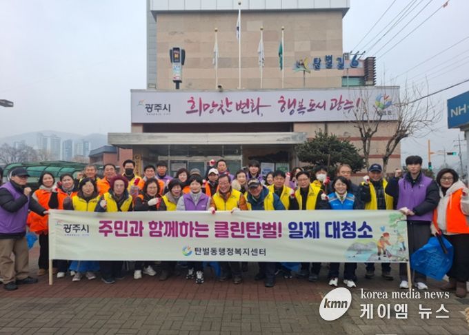 (케이엠뉴스) 광주시 탄벌동은 11일 지역 주민과 관계단체, 시 직원 등 60여 명이 참여한 가운데 ‘2월 탄벌동 클린데이(대청소)’를 실시했다.