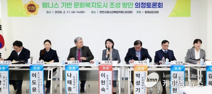 (케이엠뉴스) 충남도의회는 11일 천안시청소년복합커뮤니티센터에서 ‘웰니스 기반 문화복지도시 조성 방안 의정토론회’를 개최했다.