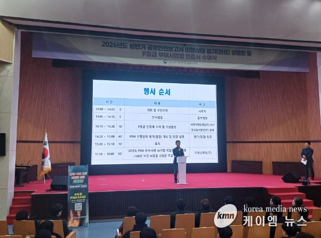 (케이엠뉴스) 중부지방노동청 수도권 중대산업사고 예방센터는 2월 11일 오후 2시부터 안산시 단원구 소재 중소벤처기업연수원 대강당에서 '2026년 상반기 공정안전관리(PSM) 이행상태 평가(점검) 사업 설명회'를 개최했다.