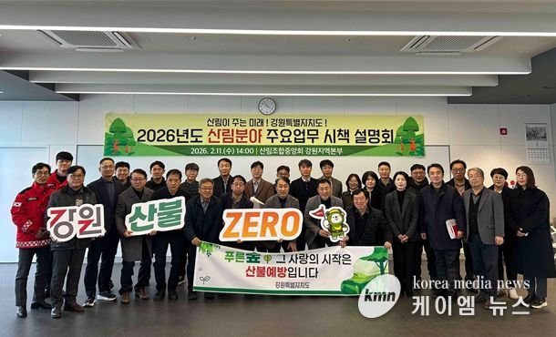 (케이엠뉴스) 강원특별자치도는 2월 11일 춘천시 소재 산림조합중앙회 강원지역본부에서 도 산림부서 및 시군 산림부서장 등 산림 관계자 70여 명이 참석한 가운데 ‘2026년 산림분야 주요업무 시책설명회’를 개최했다.