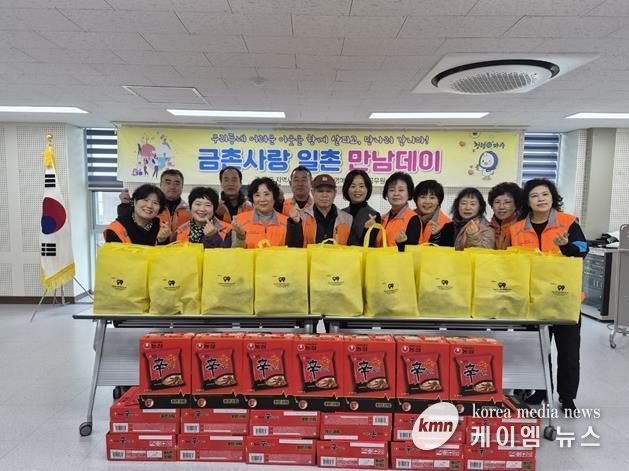 (케이엠뉴스) 파주시 금촌1동 금촌사랑협의체(지역사회보장협의체)는 지난 11일 ‘금촌사랑 일촌 만남데이’대상자들에게 각각 밑반찬과 20개들이 라면 1상자를 전달했다.