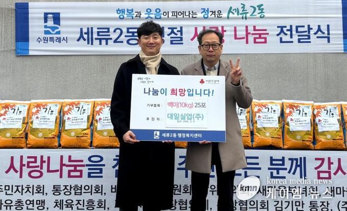 (케이엠뉴스) 지난 11일, 수원시 권선구 세류동에 소재한 대일실업(주)는 설 명절을 맞이하여 취약계층을 위한 백미(10kg) 25포를 세류2동 행정복지센터에 기부했다.