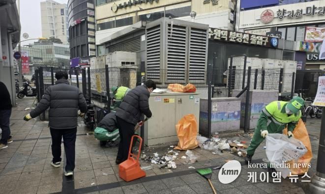 (케이엠뉴스) 수원시 팔달구는 지난 11일, 민족 최대의 명절인 설을 앞두고 유동 인구가 집중되는 수원역 일원에서 쾌적한 거리 환경 조성을 위한 ‘합동 환경정비 활동’을 전개했다.
