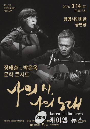 (케이엠뉴스) (재)광명문화재단은 오는 3월 14일 오후 5시 광명시민회관 공연장에서 한국 포크 음악을 대표하는 정태춘·박은옥의 문학 콘서트 '나의 시, 나의 노래'를 개최한다.