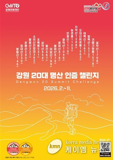 (케이엠뉴스) 강원특별자치도와 강원관광재단은 오는 2월 23일부터 11월까지 ‘강원 20대 명산 인증챌린지’를 운영한다.
