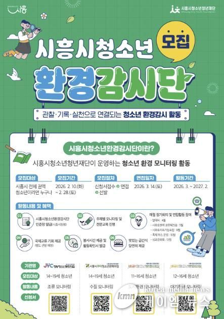 감시단의 활동 기간은 오는 3월부터 2027년 2월까지이며, 모집 대상은 시흥시 전 지역의 14세~19세 청소년이다. 2월 28일까지 신청서를 받아 서류 심사와 면접을 거쳐 3월 14일에 면접을 걸쳐 최종 선발한다.