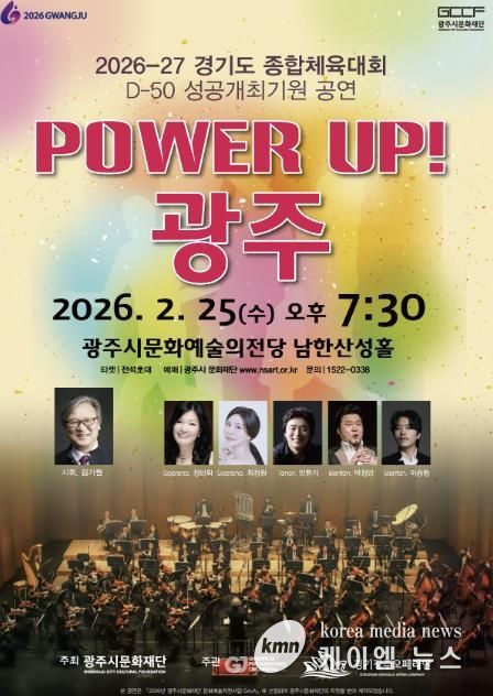 (케이엠뉴스) 광주시문화재단은 오는 25일 ‘제72회 경기도체육대회 및 제16회 경기도장애인체육대회 2026 광주’의 성공 개최를 기원하고 대회 개막 50일 전을 기념하기 위한 ‘파워업! 광주’ 공연을 개최한다고 13일 밝혔다.