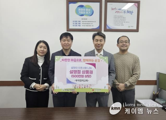 (케이엠뉴스) 의왕시 부곡동 부곡감리교회가 2월 12일 설 명절을 맞아 지역 내 어려운 이웃을 돕기 위해 500만원 상당의 상품권을 후원하며 지역사회를 위한 따뜻한 나눔을 실천했다.