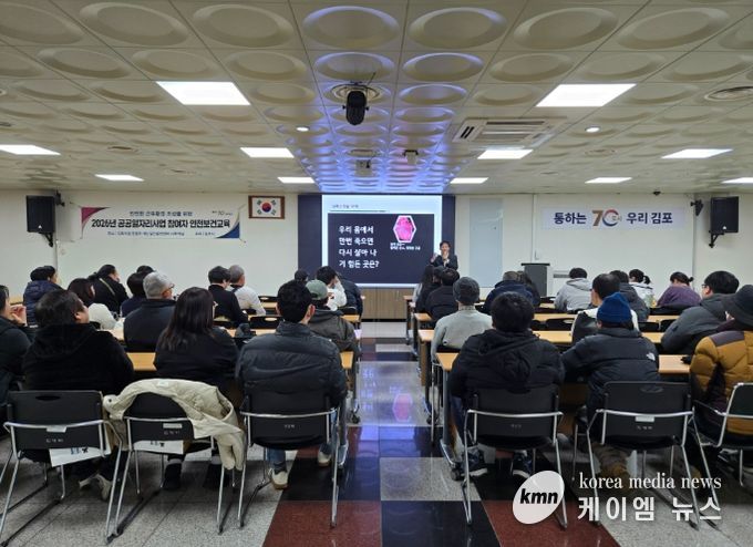(케이엠뉴스) 김포시는 지난 12일 김포시청 민방위 재난실전훈련센터에서 2026년 상반기 공공근로 및 지역공동체일자리사업 참여자를 대상으로 산업안전보건교육을 실시했다.