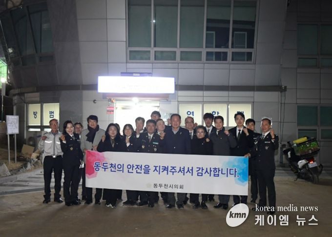 (케이엠뉴스) 동두천시의회는 지난 12일 지역 치안과 안전을 위해 헌신하고 있는 방범기동순찰연합대와 모범운전자회를 방문해 대원들의 노고를 격려하고 감사의 뜻이 담긴 물품을 전달했다.