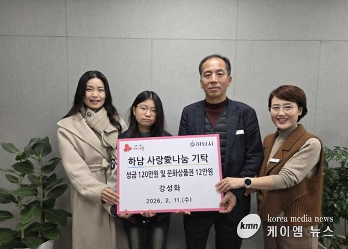 (케이엠뉴스) 하남시는 지난 11일, 강성화 씨 가족이 지역 내 취약계층 아동 및 청소년을 돕기 위해 ‘하남 사랑愛나눔’ 성금으로 120만원 및 문화상품권 12만원을 하남시에 기탁했다고 밝혔다.
