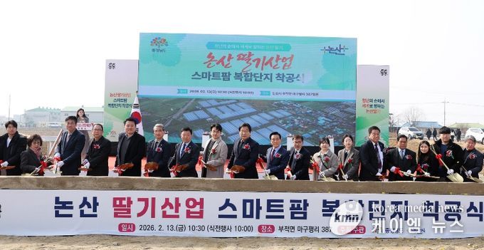 도는 13일 논산시 부적면 마구평리 일원에서 전형식 정무부지사와 청년농업인 등 300여 명이 참석한 가운데 ‘논산 딸기산업 스마트팜 복합단지(이하 논산 딸기 복합단지)’ 착공식을 개최했다.