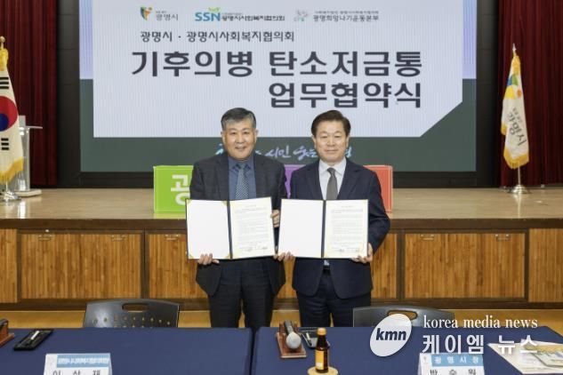 시는 13일 광명시사회복지협의회와 ‘기후의병 탄소저금통 기부금 조성 협약’을 체결하고, 탄소중립 실천 인센티브를 기후 취약계층 지원으로 연계하는 적립금 기부 제도를 본격 운영한다고 밝혔다.