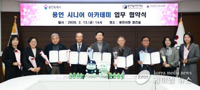 (케이엠뉴스) 용인특례시는 13일 시청 접견실에서 용인예술과학대학교, (사)대한노인회 용인시 처인·기흥·수지구지회와 ‘용인시니어아카데미 운영을 위한 업무 협약’을 맺었다.