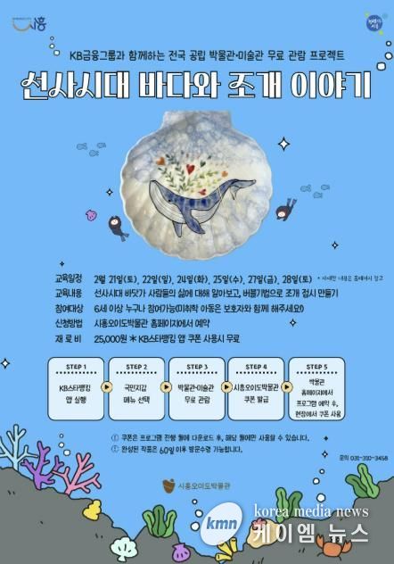 (케이엠뉴스) 시흥시는 겨울방학을 맞아 KB금융그룹의 ‘전국 공립 박물관ㆍ미술관 무료 관람 프로젝트’와 연계한 시민 참여형 교육ㆍ체험프로그램 ‘선사시대 바다와 조개 이야기’를 시흥오이도박물관에서 운영한다.