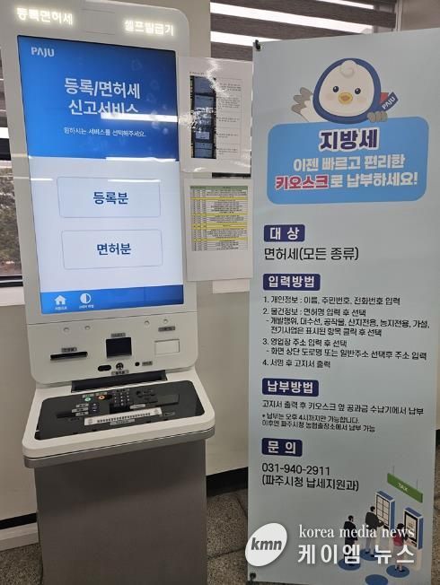 (케이엠뉴스) 파주시는 납세자가 여러 기관을 오가야 했던 기존 세금 신고 절차의 불편을 해소하고자 파주시청 민원동과 파주등기소에 무인민원발급기 운영을 개시한다.