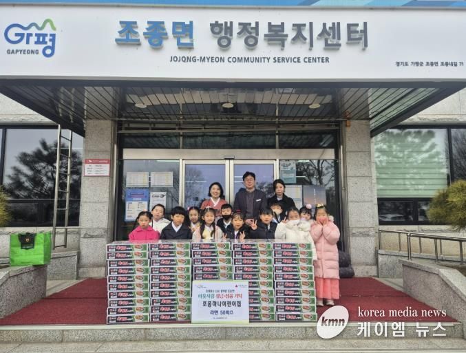 (케이엠뉴스) 가평 조종하나어린이집은 최근 원아들과 함께 조종면 행정복지센터에 방문해 라면 50박스를 기탁하며 이웃에게 따뜻한 정을 나눴다.