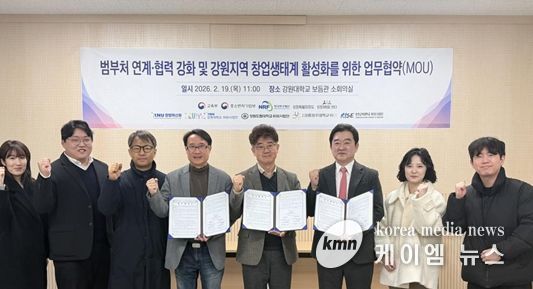 (케이엠뉴스) 강원도립대학교 라이즈(RISE) 사업단 로컬창업센터는 2월 19일 강원대학교 보듬관에서 강원대학교 KNU 창업혁신원, 강원대학교 라이즈(RISE) 사업단, 강릉원주대학교 라이즈(RISE) 사업단 등과 함께 범부처 연계·협력 강화 및 강원지역 창업생태계 활성화를 위한 업무협약(MOU)을 체결했다고 밝혔다.