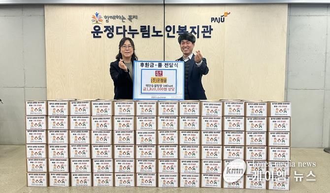 ㈜운정골은 떡만두 설렁탕 140개(182만 원 상당)를 정성껏 준비해 후원했으며, 운정다누림노인복지관은 직접 각 가정을 방문해 물품을 전달하고 어르신들의 안부를 살폈다.