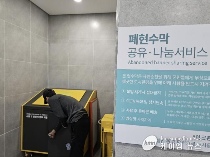 군은 불법 광고 재사용과 무단 투기를 막기 위한 장치도 마련했다. 제공되는 현수막에는 재활용품임을 알리는 스탬프를 날인하고, 특정인의 독점을 방지하기 위해 1인당 하루 10매 이내로 가져가도록 안내한다. 보관함 옆에는 양심 관리대장을 비치해 주민이 날짜와 용도를 자율적으로 기록하도록 했다.