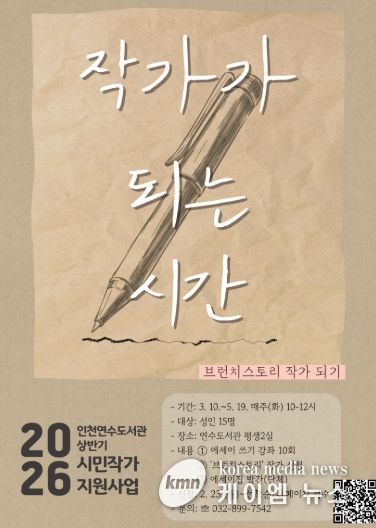 (케이엠뉴스) 인천광역시교육청연수도서관은 인천시민을 대상으로 예비작가 지원 프로그램 ‘작가가 되는 시간’ 참여자를 모집한다.