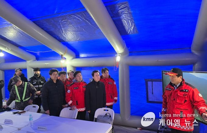 (케이엠뉴스) 김태흠 충남도지사는 22일 예산군 대술면 산불 현장 인근에 설치된 산불현장통합지휘본부를 찾아 진화 상황을 점검했다.