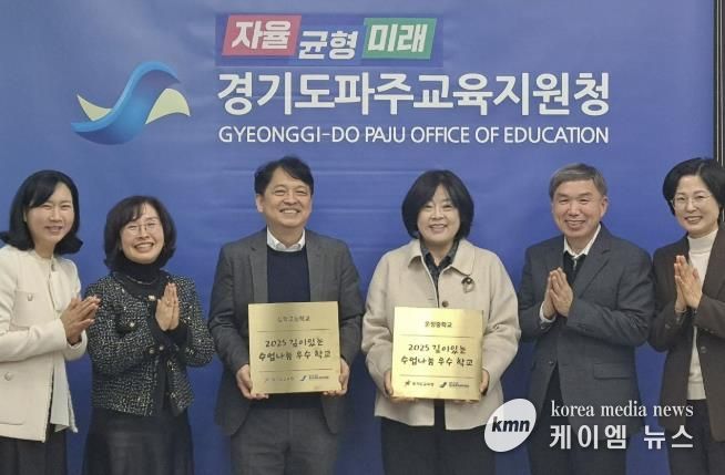 파주교육지원청은 2025학년도의 수업을 되돌아보면서 2026년 2월 20일(금), 깊이 있는 수업 나눔 실천 우수학교를 선정하여 기념 현판 수여식을 진행했다. 수여식에는 2025학년도에 일상적 수업 연구 및 지역 대표 공개 수업 등으로 깊이 있는 수업 확산에 노력한 ‘운정중학교, 심학고등학교’ 2개 학교 학교장이 참석했다. 참석자는 “2026년에도 학생 주도성을 바탕으로 한 깊이 있는 수업 실천을 위해 더욱 노력하겠다.”라고 소감을 밝혔다.