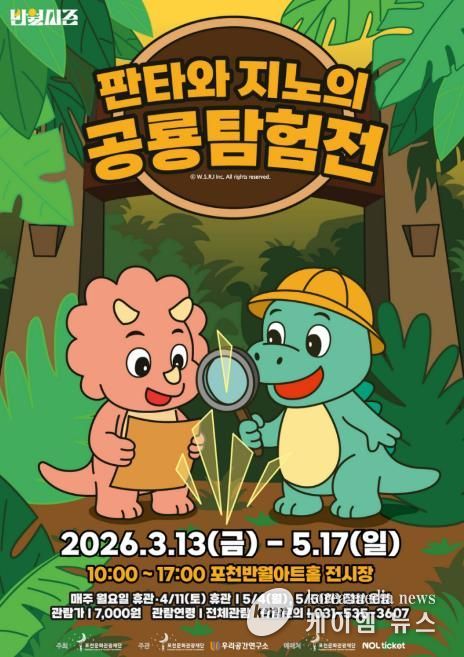 (케이엠뉴스) 포천문화관광재단은 2026년 포천반월아트홀의 첫 번째 기획전시로 어린이 체험형 전시 ‘판타와 지노의 공룡탐험전’을 선보인다.