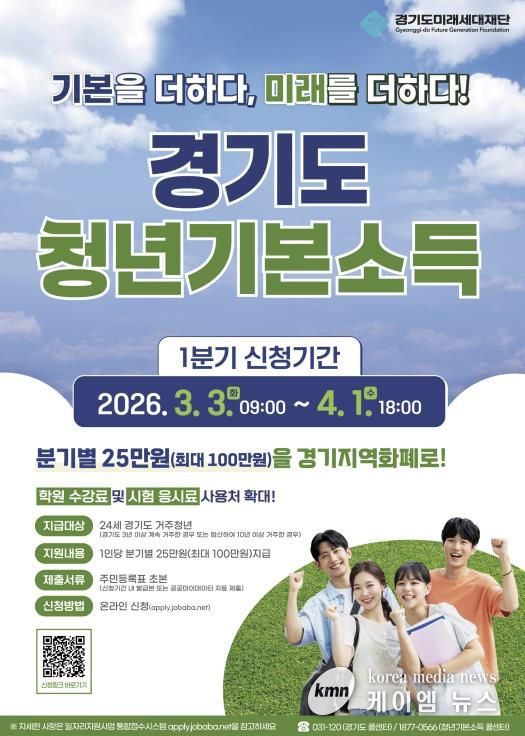 (케이엠뉴스) 여주시는 청년들의 행복추구, 삶의 질 향상 등 청년의 사회적 기본권 보장을 위해 분기별 25만원씩 최대 연100만원을 여주사랑카드(경기지역화폐)로 지급하는 '2026년 청년기본소득’1분기 신청접수를 오는 3월 3일부터 4월 1일까지 진행한다고 밝혔다.
