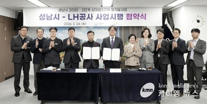 (케이엠뉴스) 성남시는 24일 오전 9시30분 한국토지주택공사(LH)와 성남 상대원3구역 재개발사업에 대한 사업시행협약을 체결했다.