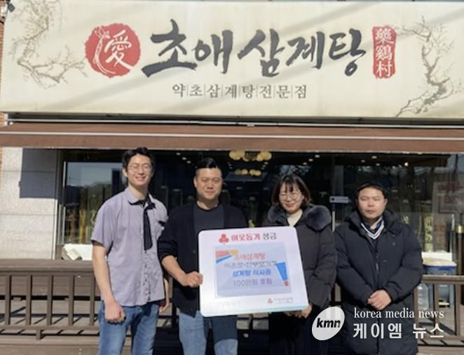 초애삼계탕 이기명 대표는 “아이를 키우는 이웃에게 특별한 한 끼를 대접하고 가족이 함께하는 행복한 시간을 선물할 수 있어 기쁘다.”며 “앞으로도 주변의 어려운 이웃을 살피며 나눔을 이어가겠다”고 말했다.