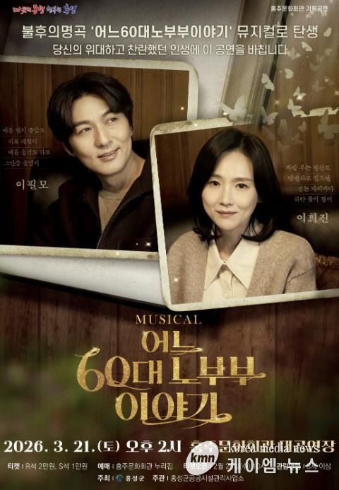 (케이엠뉴스) 홍성군 홍주문화회관은 내달 21일 오후 2시, 중장년층을 넘어 모든 세대가 공감할 수 있는 따뜻한 가족 이야기를 그려낸 뮤지컬 ‘어느 60대 노부부 이야기’를 무대에 올린다.