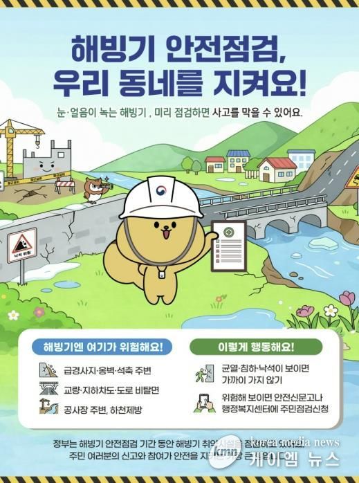 (케이엠뉴스) 시흥시는 해빙기를 맞아 2월 23일부터 4월 10일까지 해빙기 취약시설 119곳을 대상으로 일제 안전 점검을 한다.