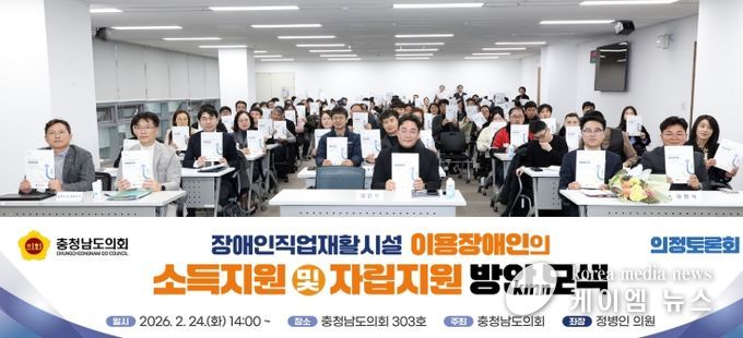 충남도의회는 지난 24일 충남도의회 회의실에서 ‘충청남도 장애인직업재활시설 이용장애인의 소득지원 및 자립지원 방안 모색을 위한 의정토론회’를 개최했다.