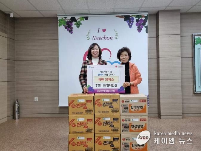 ㈜형제건설(대표 김화숙, 포천시 영중면 소재)은 내촌면 저소득 계층을 위해 라면 33박스(100만 원 상당)를 경기 사회복지공동모금회에 기탁하며 ‘이웃사랑 나눔 릴레이 50호’에 동참했다.