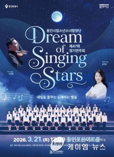 (케이엠뉴스) 용인문화재단은 오는 3월 21일 용인포은아트홀에서 용인시립소년소녀합창단 제47회 정기연주회'Dream of Singing Stars'를 개최한다고 밝혔다.
