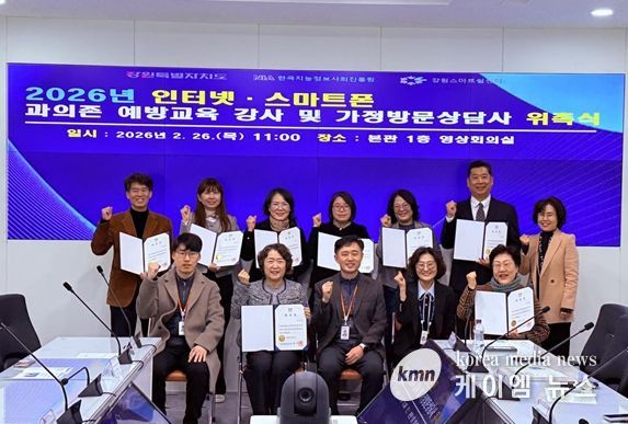 (케이엠뉴스) 강원특별자치도는 2월 26일 오전 11시 도청 본관 1층 영상회의실에서 2026년 인터넷·스마트폰 과의존 예방·해소 사업 추진을 위한 예방교육 강사 및 가정방문상담사 위촉식을 개최했다.