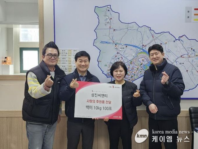 한성운 ㈜성진씨앤티 대표이사는 “지난해 추석에 이어 올해도 백미 기부를 하게 됐다. 비록 설 명절에 맞춰 기부하지는 못했지만, 후원한 쌀이 관내 어려운 이웃들에게 큰 도움이 됐으면 좋겠다”라고 말했다.
