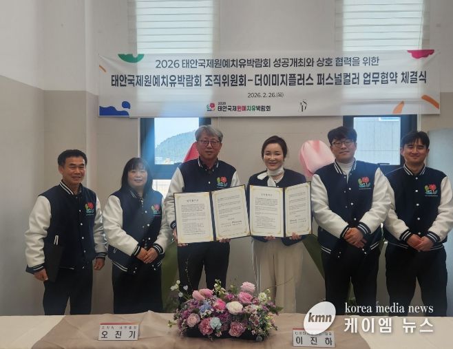 태안국제원예치유박람회조직위는 26일 조직위 접견실에서 태안국제원예치유박람회 산업관 콘텐츠 강화를 위해 더이미지플러스 퍼스널컬러와 업무협약을 체결했다.