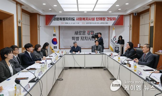 (케이엠뉴스) 강원특별자치도는 2월 27일 오전 11시 10분, 도청 본관 소회의실에서 도내 사회복지시설 단체장들과 간담회를 개최했다고 밝혔다.