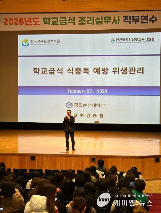 (케이엠뉴스) 인천남부교육지원청은 신학기를 대비해 학교급식 현장의 위생·안전 관리 역량을 강화하고자, 27일 관내 학교급식 조리실무사 및 조리직 공무원 600여 명을 대상으로 직무연수를 실시했다