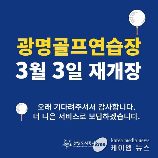 (케이엠뉴스) 광명도시공사는 약 3개월간의 개보수공사를 마치고 오는 3월 3일 광명골프연습장을 재개장 한다고 밝혔다.